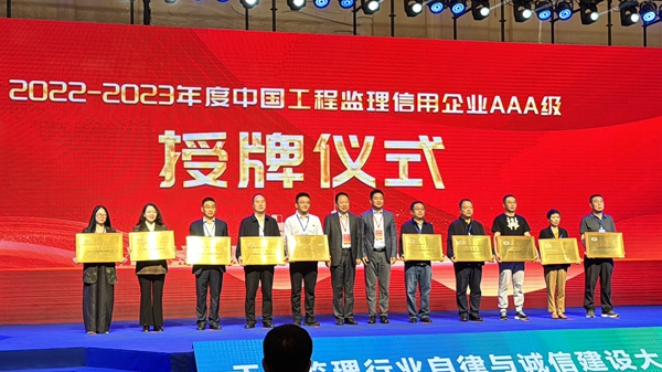 大会宣读了《中国工程监理行业自律公约》并举行了公约发布仪式,向全行业发出了《中国工程监理行业自律倡议书》;大会还公布了2022-2023年度中国建设监理协会单位会员信用评价结果,并为取得中国工程监理信用企业AAA级的80家企业代表举行了授牌仪式,我滚球官网位列其中,获此殊荣。