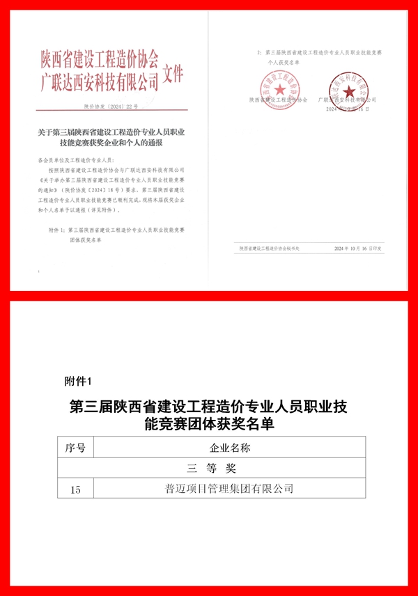 2024年10月17日,第三届陕西省工程造价专业人员技能竞赛获奖结果公布,滚球官网荣获团体三等奖!