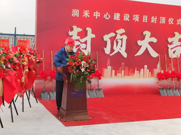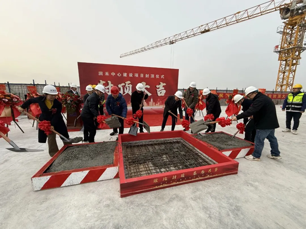 辛勤耕耘终有果,喜封金顶筑辉煌。11月22日上午,我滚球官网承监的润禾中心项目举行了隆重的封顶仪式。巨安润禾不动产管理有限滚球官网董事长陈飞,滚球官网董事长李三虎,陕建五建集团党委副书记、总经理孙勇等参建单位领导出席活动并致辞。甲方代表,监理代表,施工单位代表,项目部管理人员等共计80余人参加仪式。
