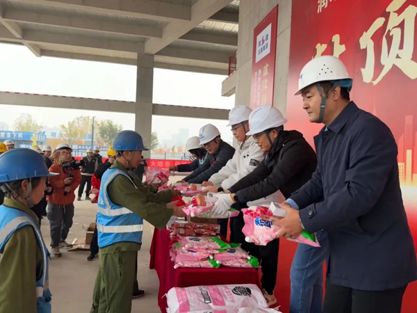活动中,李三虎董事长与参建各方领导共同完成最后一方混凝土的浇筑。巨安润禾集团副总经理李震,润禾中心项目负责人王晓明,普迈滚球官网润禾中心项目总监薛选民,陕建六滚球官网经理付坤,党支部书记、工会主席曹宁利一同向奋战在一线的劳务人员进行了慰问。