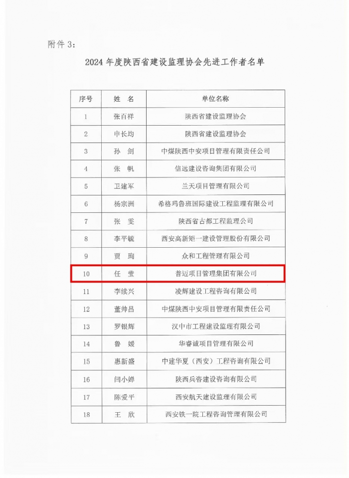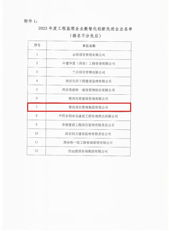 2025年1月24日,陕西省建设监理协会发布《关于陕西省工程监理数智化创新应用及先进工作者评选结果的公告》,滚球官网凭借在工程监理数智化应用方面的突出表现,获评“2023年度工程监理企业数智化应用先进企业”。同时,滚球官网办公室主任任莹同志荣获“2024年度陕西省建设监理协会先进工作者”荣誉称号。
