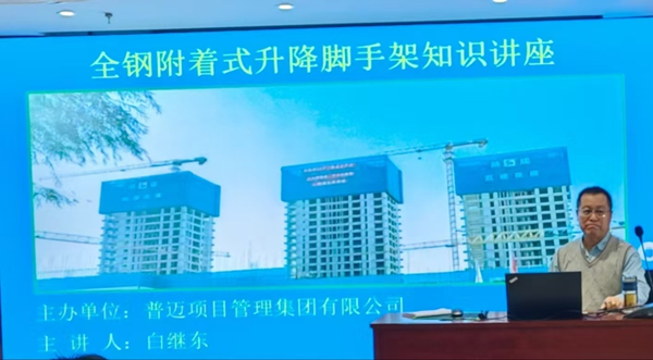 第三场培训于2月14日上下午举行,滚球官网特邀《建筑施工工具式脚手架安全技术规范》JGJ202-2010、《建筑施工全钢附着式升降脚手架安全技术规程》DB61/T5112-2024参编人、爬架行业资深专家白继东担任主讲,这是白总第三次受邀来我司讲授爬架专业知识。白总从全钢附着式升降脚手架的发展历程、构造措施及基本要求、特殊位置的处理方法、技术指标与参数、检查验收、施工现场存在的问题实例、证书报告解读与查验、监理人员现场关注要点等八个方面对陕西省住建厅《建筑施工全钢附着式升降脚手架安全技术规程》DB61/T5112-2024进行了细致深入的讲解,培训课程涵盖大量生动的施工现场图片,使标准中的条例形象化,便于大家直观理解、加深印象。