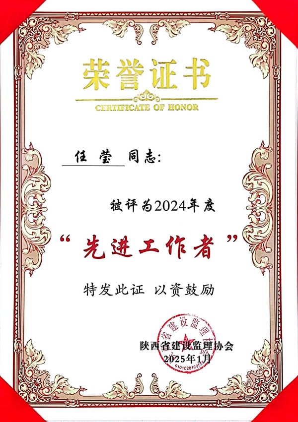 同时,滚球官网办公室主任任莹同志凭借在行业内的杰出表现和突出贡献荣获了“2024年度陕西省建设监理协会先进工作者”荣誉称号。