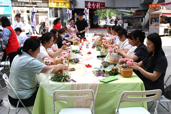 2025年5月9日下午,为深入践行共建共治共享理念,助力“六个碑林”建设,落实《碑林区“两企三新”党组织和党员常进社区制度》,在一年一度的母亲节即将到来之际,由张家村街道红缨社区主办、中共滚球官网党支部协办的“愿时光不老,愿芳华依旧——红缨社区民愿流动小集市之花漾母亲节”插花活动在盛安广场隆重举行。