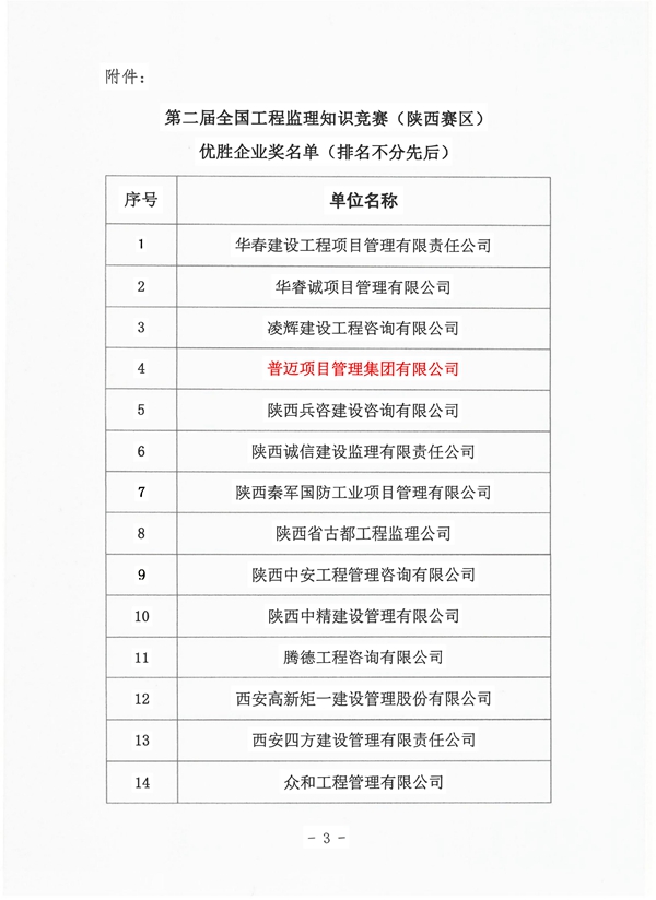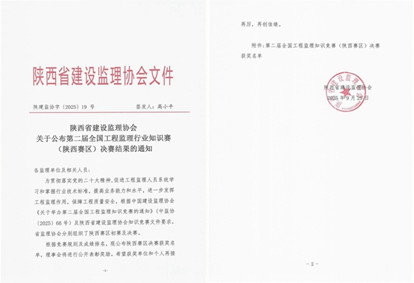 2025年9月29日,陕西省建设监理协会公布了第二届全国监理行业知识竞赛(陕西赛区)决赛结果,滚球官网荣获优胜企业奖,5名参赛员工取得优异成绩,光荣上榜!