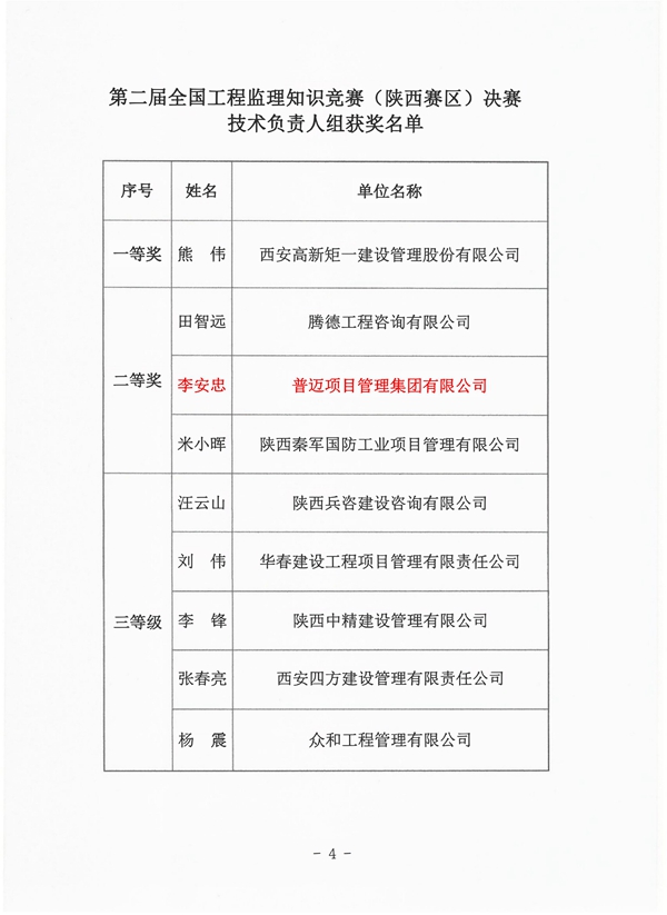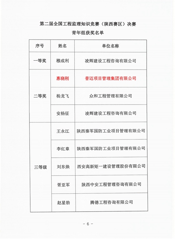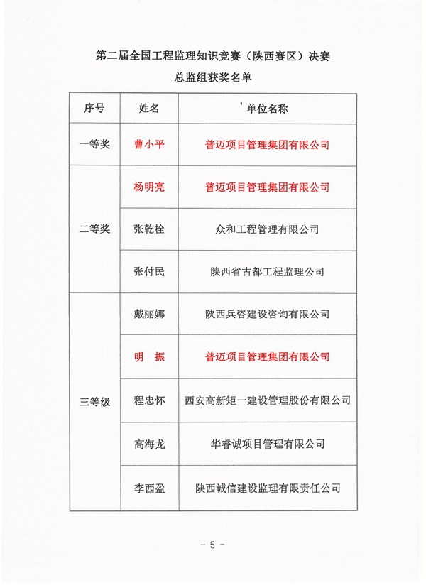 热烈祝贺以上5名员工在第二届全国监理行业知识竞赛(陕西赛区)决赛中荣获佳绩!滚球官网将继续做好备赛保障工作,全力支持晋级全国监理行业知识竞赛的诸位参赛员工,预祝其在全国竞赛中再创佳绩,为滚球官网以及为陕西省争得荣誉!