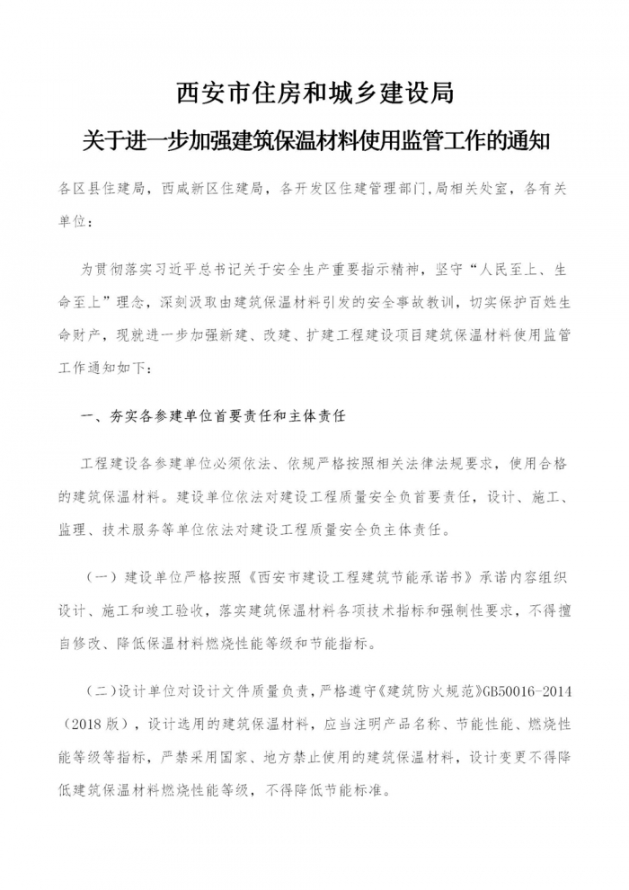 西安市住房和城乡建设局关于进一步加强建筑保温材料使用监管工作的通知